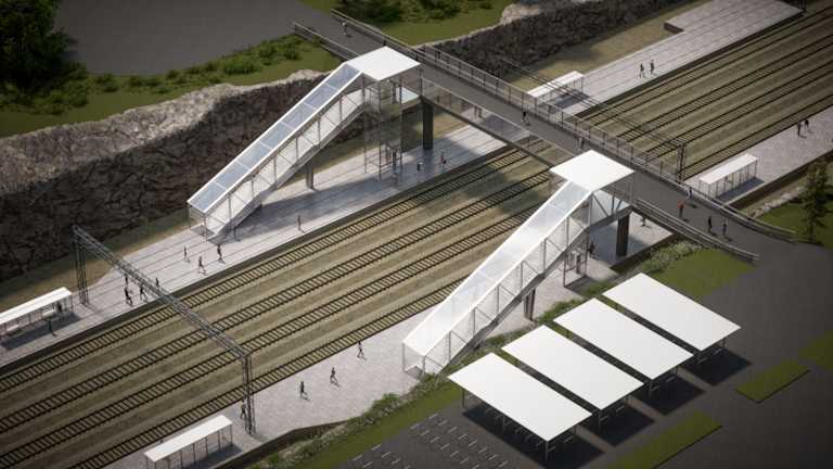 Havainnekuva Veikkolan juna-asemasta on Länsirata Oyn.